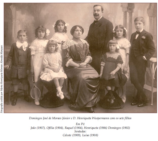 Da descrição que neste capítulo se faz acerca da sua vida, pode considerar-se evidente que foi nesta actividade que gerou essa riqueza, envolvendo nela os familiares e legando-a posteriormente aos filhos: três do primeiro casamento com D. Maria Gertrudes (Domingos José de Moraes Júnior – 1870/1931, Maria Gertrudes de Moraes – 1872/1945 e Mariana Rosa de Moraes – 1874/1902) e mais três do segundo, após ter enviuvado e de novo contraído matrimónio em 1875, com D. Amélia Rosa de Jesus Formigal, (Fernando Formigal de Moraes -? /1910, Ana Virgínia Formigal de Moraes – 1880/? e Amélia Rosa Formigal de Moraes -? /?).