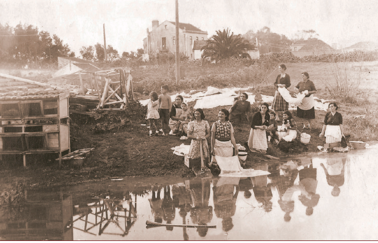 Lavadeiras na Corriola, uma zona localizada entre a Parede e Carcavelos, nos anos 40