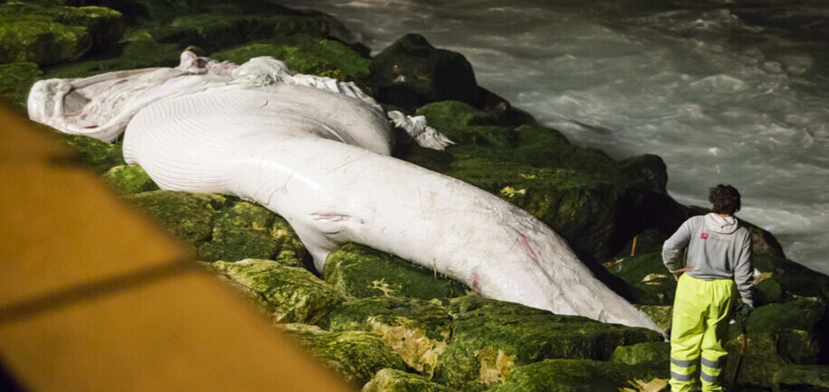 Baleia deu à costa na Praia da Parede